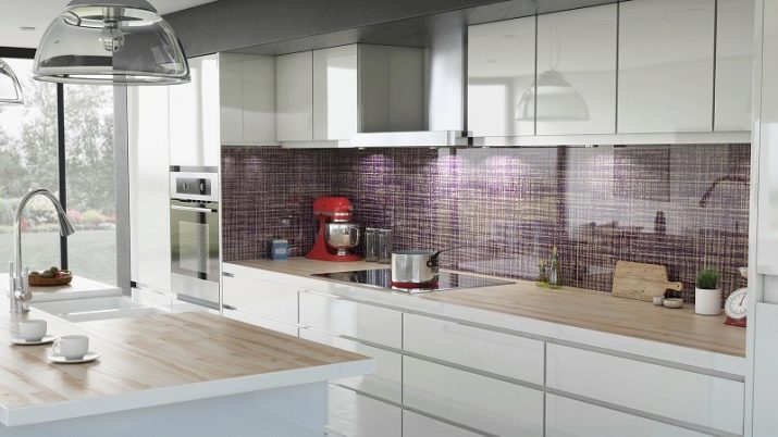 Bordpladen vælges efter farven på vægge, gulv eller forklæde. Lilla vælges normalt ikke til et forklæde, da dette vil føre til glut.