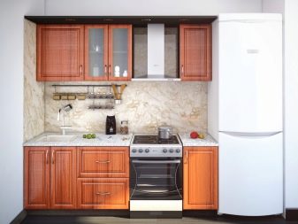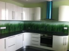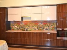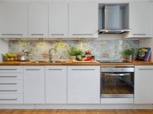 - Hvis køkkenet er lille, skal du vælge et panel med en blank overflade;