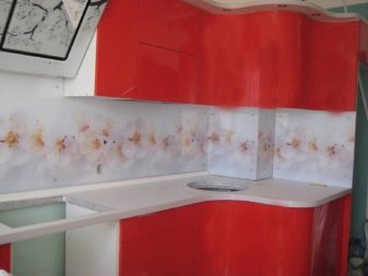 Dette er den mest økonomiske version af panelet. Dette design har mange fordele: en række muligheder og modeller, omkostninger, let installation. Men når du køber falske paneler af plast, skal du læse de oplysninger, som producenten angiver, omhyggeligt. Sagen er, at der er plastmodeller, der næppe er sikre, de kan frigive giftige stoffer, når de opvarmesderfor skal de installeres så vidt muligt fra komfuret og ovnen.