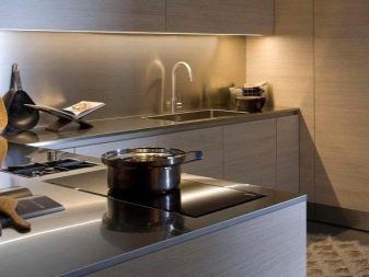 Dette design er lavet af rustfrit stål. Det er kendetegnet ved styrke, holdbarhed, modstand mod korrosion. Men sortimentet er temmelig magert, så i de fleste tilfælde er denne plade installeret nær komfuret. Overfladen på rustfrit stål er struktur eller blank.