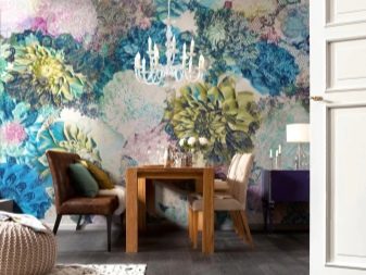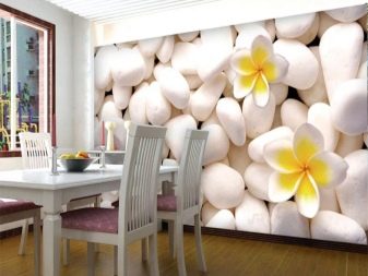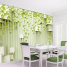 3D-billeder vil hjælpe med at skabe en visuel illusion af lydstyrke. Denne type tapet ser godt ud på en af væggene i køkkenet eller kun på en del af køkkenvæggen.