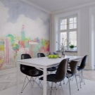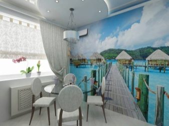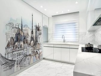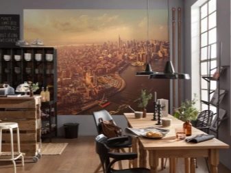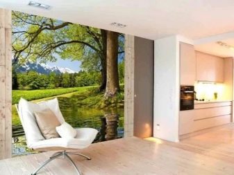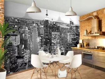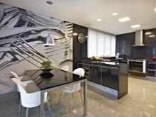 En bunke tegninger eller ornamenter af forskellig betydning kan spille en dårlig vittighed og skabe en ubehagelig følelse af pres og trængsel i rummet. Den bedste løsning er at afslutte 1-2 tilstødende vægge i køkkenet med tapet med et fotobillede, og den resterende plads kan indsættes med almindeligt neutralfarvet tapet. En anden populær måde er plakat på vægmaleri og rumets vægge og døre. Døren er maskeret på en lignende måde, der oprettes et fælles billede i rummet, som også er i stand til at give rummet effekten af dens udvidelse.