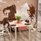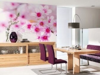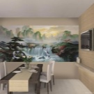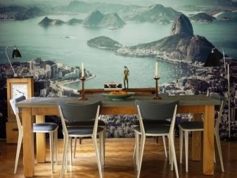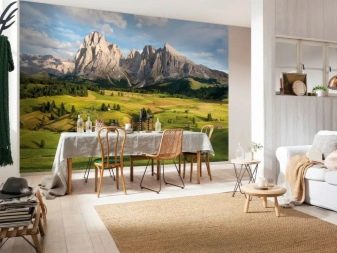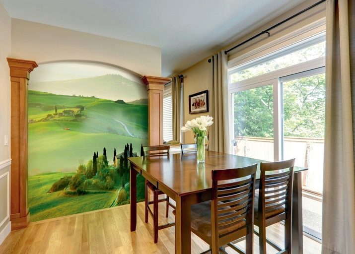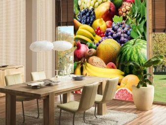 Køkken tapet kan ofte ses over spisebordet eller på en helt ubesat væg. Dette indretningselement kan let skelne mellem spisepladsen. Billedet ved bordet er typisk ikke meget stort. Det kan efterligne et åbent vindue, en dør, en del af et andet rum, en bue, en trappe, der går op, og endda et billede i en ramme. Reproduktioner af landskaber ser perfekt ud i døren og vindueåbningerne.