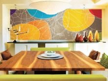 Vægmalerier, som du kan udvide pladsen med, vil være en virkelig frelse for ikke særlig store køkkener. Et korrekt valgt billede vil være i stand til fuldstændigt at ændre den visuelle opfattelse af rummet, hvilket giver det rummelighed, højde eller bredde, og et usædvanligt mønster vil let afspejle rumets særlige karakter og specielle stemning. Billeder, der kan udvide grænserne for værelser, sparer dig fra følelsen af indelukket plads og giver dig mulighed for at justere alle ulemper ved layoutet.