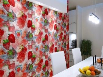 - Vinylprodukter ikke bange for endda betydelig fugtighed - af denne grund betragtes de som den mest ideelle mulighed for køkkenet, når du vælger. Disse tapeter er forskellige i deres tekstur - de er næsten fuldstændigt i stand til at efterligne træ, natursten, ru udseende tekstiler. De kan endda vaskes ved hjælp af moderne husholdningskemikalier uden frygt for, at dette materiale vil blive ødelagt. Under påvirkning af solen vil disse tapeter ikke falme.