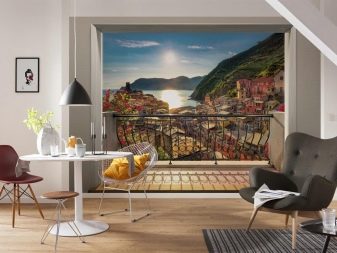 Tapet med virkningen af visuel udvidelse af rumets rum, selvom de væsentligt kan påvirke opfattelsen af et holistisk rum, men de skal stadig vælges og anvendes korrekt. Produkter med denne effekt kan blive et ægte "højdepunkt" for ethvert boligindretning; deres farve kan skille sig ud fra hovedtonen i rummet med kontrastfarver eller i harmoni med dem. Hvis dit køkken har standard- eller lavloft, skal du vælge den hvide tone på fototapetet til deres efterfølgende dekoration. Hvis køkkenets højde tillader det, kan du overføre et sådant billede til selve loftet og derved kombinere 2 fly.