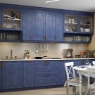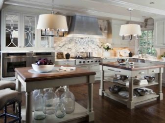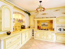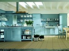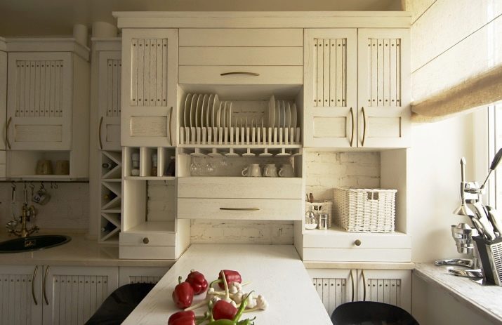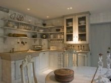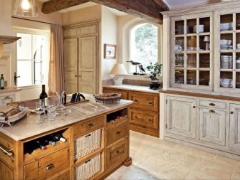 I de fleste tilfælde er provencalske skabe udstyret med åbne hylder. De lukker kun nogle gange deres døre. Provence-køkkener er overvejende udstyret med øverste skabe, fordi det understreger interiørets rustikke oprindelse. Brug lukkede skabe til at placere moderne husholdningsapparater såvel som andre ting, der ikke passer ind i kanonen. Borde og stole skal være lavet af naturligt træ, men brugen af smedte dele og krøllede ben forbliver efter kundens skøn.