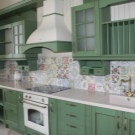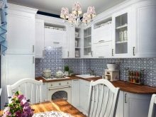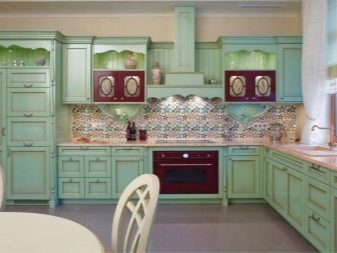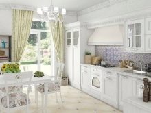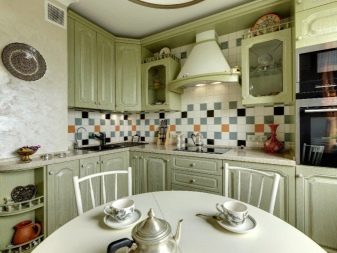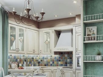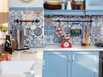 Vigtigt: Hvis du vælger et lappeprogram, er køkkenet som helhed designet så neutralt som muligt. Dette undgår rod i rummet med forskellige farver. Et godt alternativ til patchwork er alderen fliser. Hun ser så vintage ud som muligt og tilføjer en fornemmelse af antikken til rummet. Den fremhævede uhøflighed i sådanne fliser er i fuld overensstemmelse med de grundlæggende kanoner i Provence.