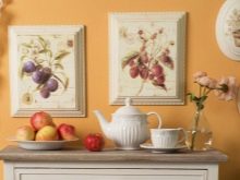 Det er værd at fokusere på sådanne subtiliteter som malerier og plakater i stil med Provence. De vælger et maleri, der viser oliventræer, blomster i vaser og gryder. Sørg for at overveje størrelsen på malerierne. Det enorme lærred på ¾ væggen i et lille rum vil se ærligt grimt ud. Brug heller ikke billeder i beskeden størrelse på en stor væg.