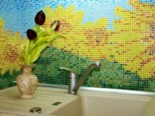 Nogle mennesker tror, at det er bedst at designe et forklæde vha. Paneler. De er dækket med mosaikker, malet for hånd eller dekoreret ved fototryk. Mosaikdesign er lavet af følgende materialer:
