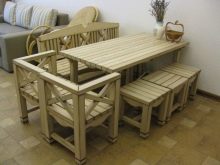 Designere mener, at Provence-stilen ideelt udtrykkes i et massivt spisebord. Derefter spiller han rollen som dominerende og placeres i midten. Runde borde anbefales at være omgivet af elegante stole. Et rektangulært bord er indrettet med bænke eller bænke. Polstrede møbler i det provencalske køkken vælges med en diskret farve og de samme mønstre.