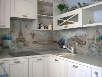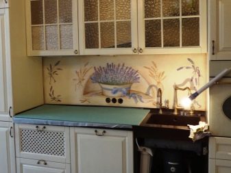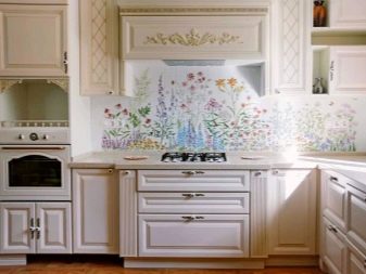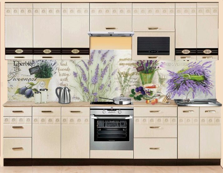 Udsmykningen af denne sektion af køkkenet er ikke mindre vigtig end designet af andre vægoverflader. Fuldstændigheden af billedet af rummet afhænger af det. Valget af indstillinger til det provencalske forklæde er meget stort. Ofte anvendte vægpaneler. Dette materiale er anderledes: