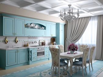 Med hensyn til de turkise toner betragtes de som ideelle til stil med Provence. Designere forbinder turkis med det glitrende hav i solen. Denne farve er meget forskelligartet, som elementet i havet er. Efter ønske kan han udtrykke både blødhed og ro og en dynamisk holdning. Turkis farve tilrådes at bruge sammen med varmere toner.