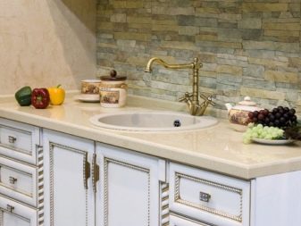 En meget høj pris bliver nødt til at betale for forklæder lavet af natursten. Dens fordel er en lang levetid og modstand mod forurening. Billigere menneskeskabt materiale kan let blive tilstoppet.