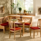 Et sådant træhjørne bestilles bedst af en betroet håndværker, der tager højde for alle køkkenets dimensioner. Et rundt eller ovalt bord vil gøre headsettet mere elegant og let, og de lige linjer på ryggen eller benene giver strenghed.