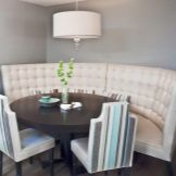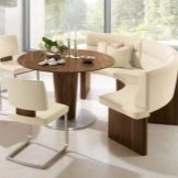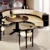 - Halvcirkelformede. Elegante sæt er ikke egnede til små rum. De bruges bedst til at indikere spisepladsen i en lejlighed i studio-type på en glaseret veranda. I kombination med et rundt bord opnås et smukt sæt i moderne eller klassisk stil.