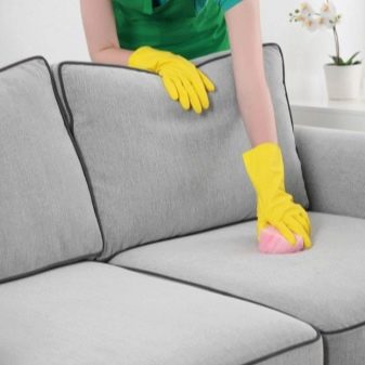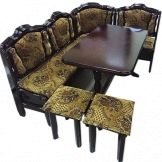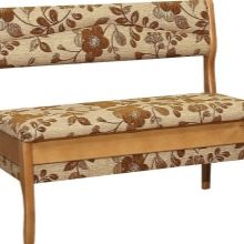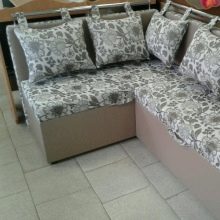 Oftest købes et blødt hjørne i køkkenet med stof, tæpper eller jacquard polstring. Det er fuldstændigt afsluttet med en behagelig til berøringsmateriale, som gentages i udformningen af en stol eller afføring. En mere praktisk mulighed er ægte læder eller en kvalitetserstatning. De er lettere at pleje ved at tørre af med en fugtig klud eller vaskeklud.