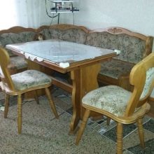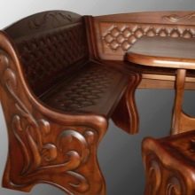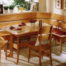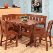 Du bliver nødt til at bruge køkkenhjørnet mindst to gange om dagen, så du er nødt til omhyggeligt at nærme dig valg af materiale. Blandt fordelene ved naturligt træ er holdbarhed, fremragende kvalitet og evnen til at tolerere øget fugtighed i rummet. Det er bedre at foretrække produkter fra massiv eg eller fyr: