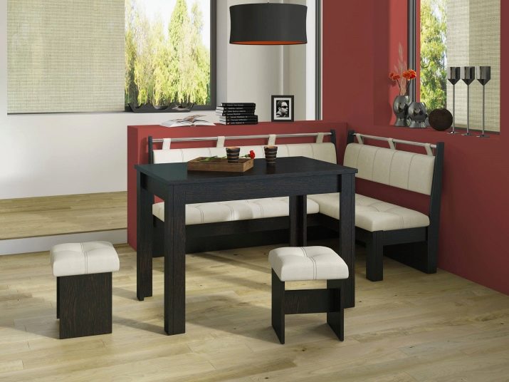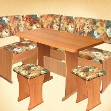 Når du dekorerer køkkenet, er det vigtigt at placere spisegruppen korrekt for at sikre maksimal komfort for hvert familiemedlem. Hvis du har ledig plads, kan du købe et lille hjørne. Det består af flere elementer.
