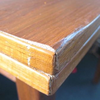Men mange ejere foretrækker en budgetmulighed fra spånplade belagt med finér. På trods af den smukke udsigt og den overkommelige pris kan der opstå en række problemer: