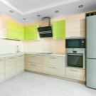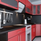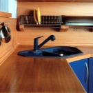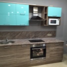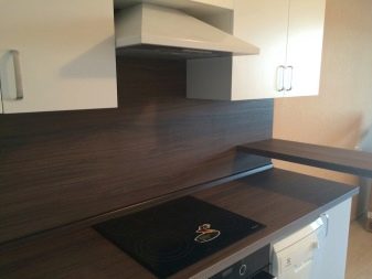 - Relevans i køkkenet. Foretag straks en forbehold for, at alle disse fordele er relative, men en spånplade lavet af spånplade kan tåle høje temperaturer og mekanisk belastning, det er også praktisk ligegyldig med aktiviteten af madsyrer.