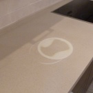 På plastiske bordplader anbefales det ikke at skære mad, ellers kan overfladen blive beskadiget.