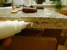 Spånplade er meget bange for vand, fordi det er vigtigt at overvåge lamineringslagets integritetisær på de steder, hvor bordpladen støder op til vasken og kogepladen. Hvis detekteres trykaflastning, er det nødvendigt at reparere panelet så hurtigt som muligt ved hjælp af et specielt fugemasse.