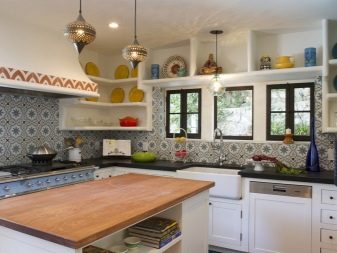Hvis et spånplade imiterer et andet materiale, skal det være passende: "metal" passer ind i køkkenet i en højteknologisk stil, og "træ" er perfekt kombineret med etnisk design.