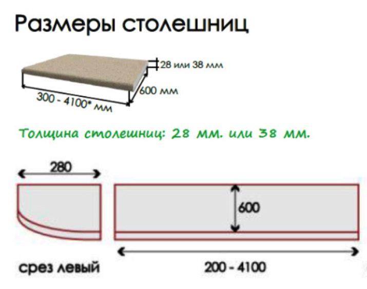 Uanset om du har brug for en bordplade til et bord eller som dækning til et køkken sæt, er den første ting du skal være opmærksom på dimensioner. Produktets længde og bredde bestemmes ikke så meget af dine egne ønsker som af køkkenets dimensioner, som normalt sætter ejeren i stramme rammer.