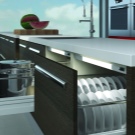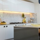 - skabe indtryk af møbler hængende i luften ved at placere en båndbelysning under køkkenet;