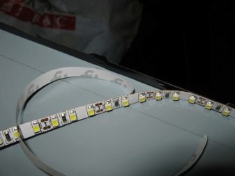 - Klip den rigtige mængde LED-strimmel. Det er nødvendigt at skære strengt i henhold til mærkerne! Ved at klippe båndet et andet sted, kan du ødelægge det.