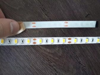 - Basen på LED-båndet er selvklæbende, derfor, efter at den tidligere har rengjort og affedtet overfladen, limes den simpelthen.