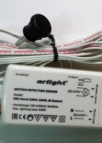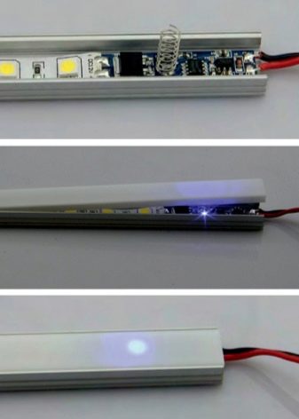 Et af de mest upraktiske trin i installation af baggrundsbelysning med en LED-strimmel er behovet for at installere en separat switch til det. Som regel er dette spørgsmål relevant for at fremhæve arbejdsområdet i køkkenet.