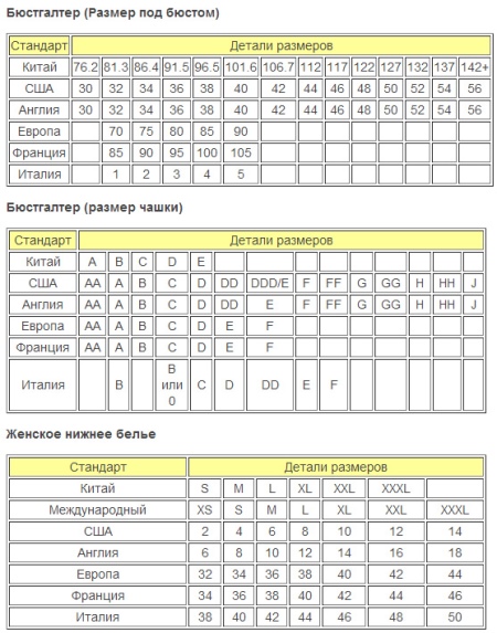 Til at begynde med er det vigtigt at huske forskellene i størrelsesskalaen mellem russiske og italienske produkter. Så den første størrelse på en badedragt fra Italien vil svare til den russiske markering 70A på toppen og 40 på bunden. Den anden størrelse er henholdsvis 75 V og 44. Den sidste (maks.) Er 80V og 46.