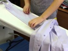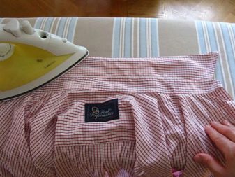 - Skjorten er placeret med en krave på overfladen af strygebrættet. Toppen skal være den forkerte side. Stryk stoffet fra hjørnerne. Omkring knapper og løkker skal glates ud specielt omhyggeligt.