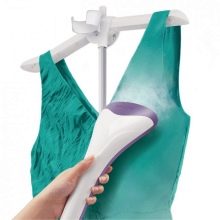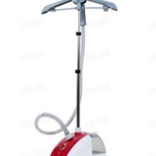 - Steamer. Enheden fungerer med varm damp og er praktisk til daglig brug. Dets hovedformål er at sætte ordre på tunge beklædningsgenstande af tykt stof. På grund af tilstedeværelsen af lodrette “skuldre” er designet egnet til behandling af frakker, dragter, jakker. Ved hjælp af enheden fjernes let den indgroede lugt af tobak, andre aromaer, stærke folder og folder fjernes.