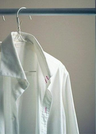 - Efter vask er det værd at tørre skjorten med skuldrene - bøjler med brede og stive lameller. Derudover er det nødvendigt at udjævne og rette sagen.