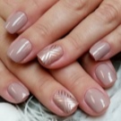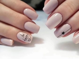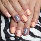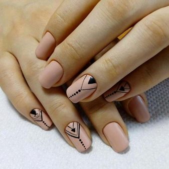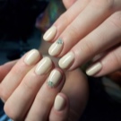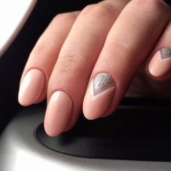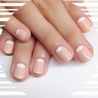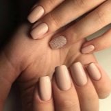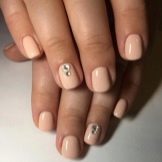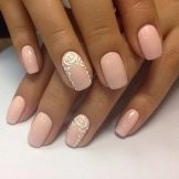 Negle med en kort, vokset kant er mindre tilbøjelige til skørhed. Men på grund af det faktum, at neglebedet ikke altid er langstrakt af naturen, kan utilstrækkelig længde fremhæve ulemperne ved den naturlige form. Det ser grimt ud og har brug for visuel balance. I betragtning af at beige hører til palettenes lyse farver, er dette ikke så enkelt. Ofte er du nødt til at satse på en skygge af beige og vælge det rigtige print eller indretning.