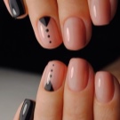 Du kan male alle negle med en farve ved hjælp af en satin teksturbelægning og skildre franske prikker på accent negle med prikker i forskellige størrelser. Ved det samme princip kan et prikmønster påføres stedet for hullerne. Når du opretter et sådant design, er det vigtigt at overveje, at det samlede antal accenter ikke bør overstige tre eller fire. Ellers risikerer designet at blive farverigt og kedeligt.