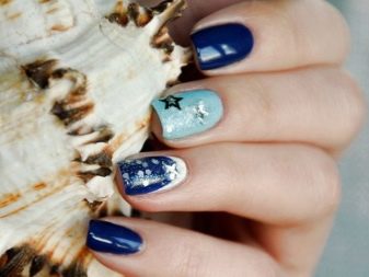 Manikyr i blå og blå toner egnet til enhver længde og form på negle. Der er et stort antal interessante designs med disse nuancer.