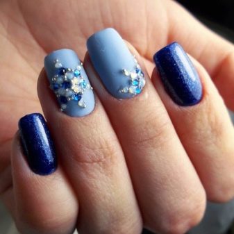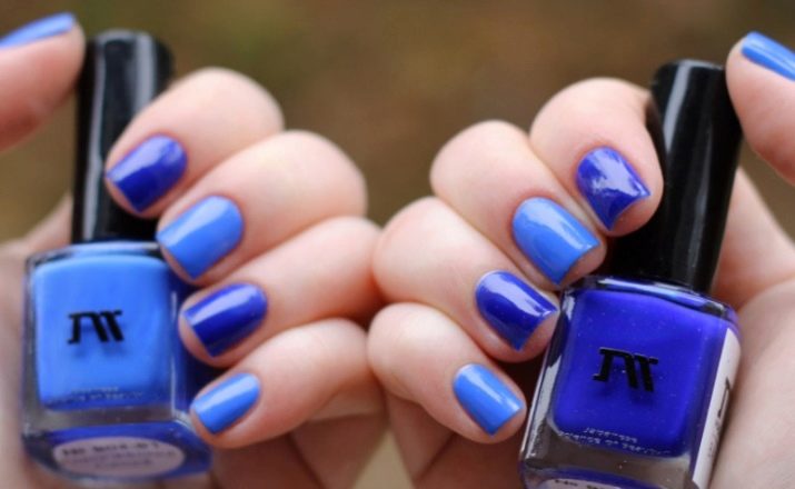 Blåblå manikyr er i dag en af de populære muligheder. Især denne kombination er relevant om foråret og sommeren.