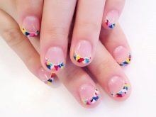 Fransk manikyr er en ægte klassiker af negeldesign, som altid vil være i trend. Imidlertid er det for tidligt for unge damer at bære en sådan voksen mulighed, og sandsynligvis vil de virke for kedelige af dem. Du kan komme ud af situationen ved hjælp af en farvet jakke. Først påføres en gennemsigtig eller nøgen lak på neglen, og derefter tegnes en farvet strimmel på spidsen. I dette tilfælde vil det være interessant at se på en kombination af flere nuancer på forskellige negle. Til farvejakke bruges både pastel og lyse paletter.