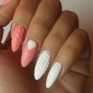 - Polka prikker og hjerter i design af negler i sig selv er søde og retro-motiverende, og tilføjelsen af en strikket effekt vil skabe en original manikyr.