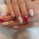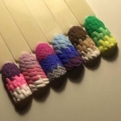 Gelpolver med akrylpulver påføres i samme sekvens som med gelmanikyr. Først i slutningen af det sidste lag før tørring i lampen drysses det med pulver. Denne metode til at dekorere negle vil forårsage ikke kun ømhed, men også glæde fra små fibre på manikyren, hvilket gentager strukturen på garnet til strikning. Akrylpulver styrker også manikyren, du kan drysse hele overfladen på neglen eller bare et mønster. I begge tilfælde vil der være et spektakulært design. Derudover kan hvidt pulver eller flerfarvet anvendes.