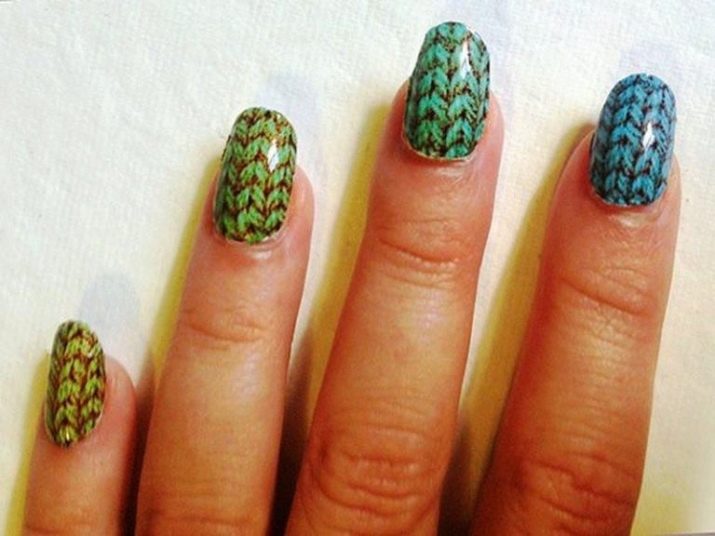 På trods af ensartetheden i stor strikning kommer ideer til design af negle i forskellige variationer. Den meget "strikning" på neglene er et meget delikat indretning. Store fletninger, indviklede romber, kegler, knolde, en klassisk spikelet, kæder eller lodrette striber vil uden tvivl være interessante ideer til sokker om vinteren.