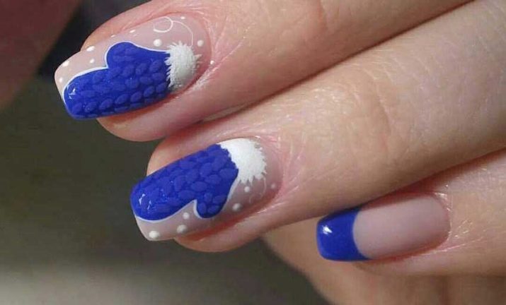 - Inkluderingen i de strikkede mønstre i et andet ornament, som i eksemplet med smukke vanter fremstillet i samme strik som ideen om en manikyr i stil med "sweater". En sød temaide til nytårsbegivenheder.