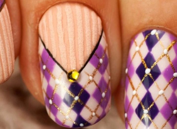 - Så at skabe original varme på denne manikyr er en interessant beslutning af en mester med en sans for humor. Strikning af "sweatere" i kombination med de populære farver på et tørklæde eller plaid. Designet ser stiligt og pænt ud.