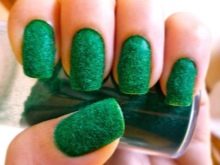 Matgrøn manikyr har været populær i flere sæsoner. Før det retfærdige køn var det nødvendigt at holde negle over dampen for at skabe en sådan effekt. Til dato er forskellige materialer tilgængelige til salg for at skabe effekten af en mat finish. De bruges både til at skabe et monofonisk design og i kombination med en blank finish og prints.
