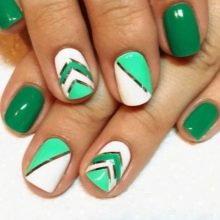 Geometriske mønstre i manikyr er kendt for enhver kvinde. En sådan manikyr er ret interessant, ekstravagant, på samme tid enkel at udføre. Mønstre kan være meget forskellige: fra standardlinjer til polyhedroner. For nylig betragtes rutet manikyr i mode. Et geometrisk mønster i form af en celle påføres den grønne base.