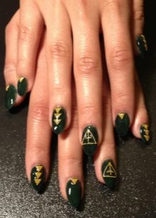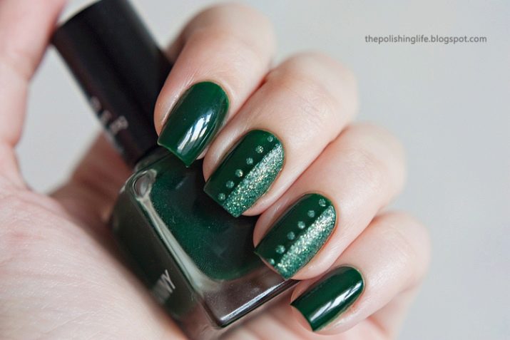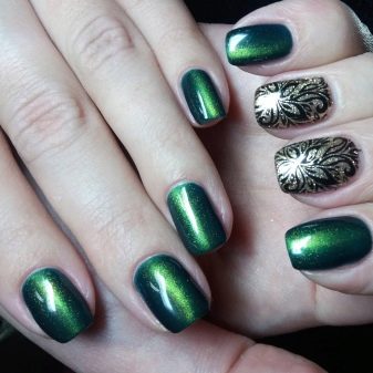 Normalt ser en mørk manikyr dyster ud, men dette gælder ikke for grønne nuancer. En sådan manikyr er ifølge stylister en god måde at skabe et højtideligt billede på.